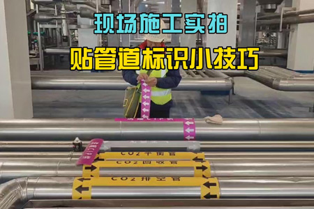 管道標識對于確保工業(yè)安全至關重要。施工前需先清理管道表面,使用軟毛刷去除塵土并用酒精清潔,確保表面干燥。接著確定標識位置,通常在管道的起點、終點及重要節(jié)點。粘貼色環(huán)時僅撕開一小部分背膠,以便于微調位置,同時減少氣泡和褶皺的產生。使用刮刀從中心向兩邊抹平,確保貼合緊密。文字標簽與箭頭指示應準確貼于色環(huán)旁,標明介質名稱和流向。這樣的做法不僅便于安裝,也方便日后維護和更換。