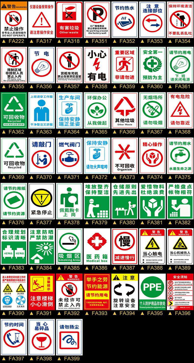 全套PVC材質(zhì)安全標(biāo)識標(biāo)牌