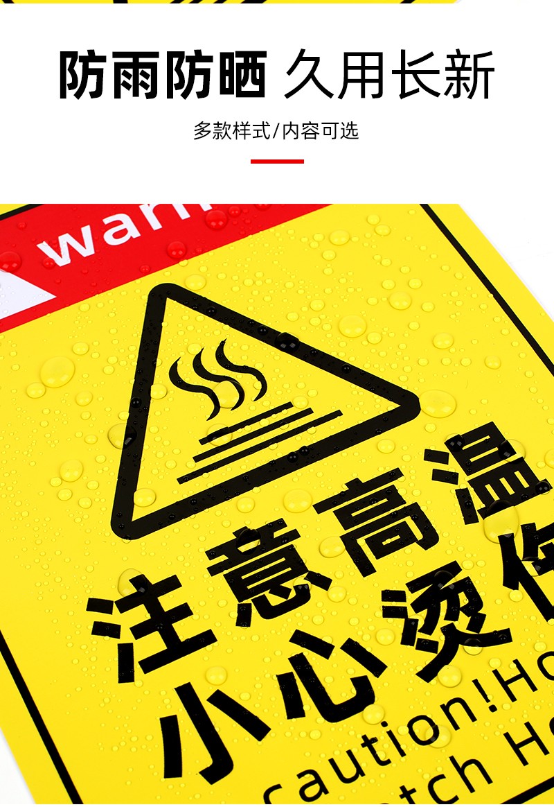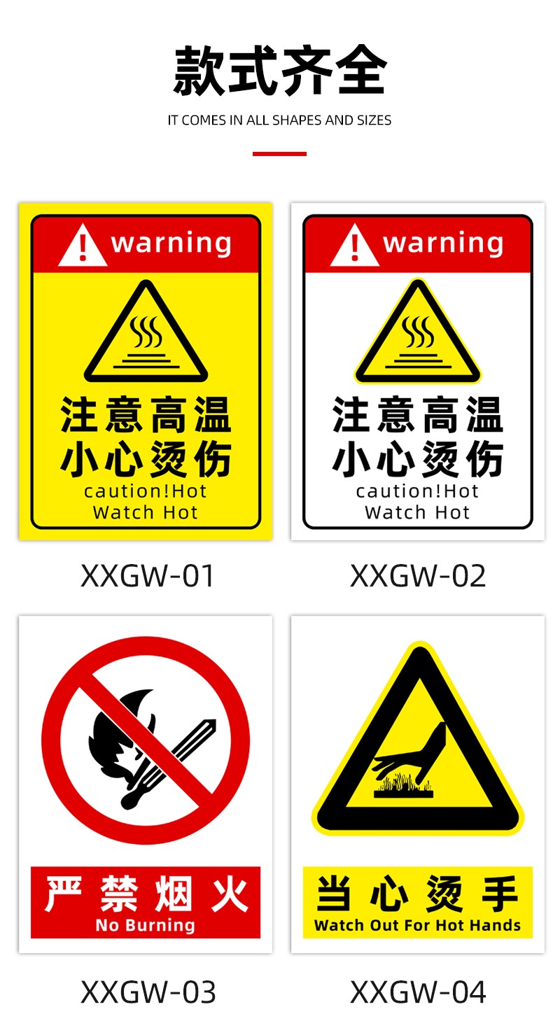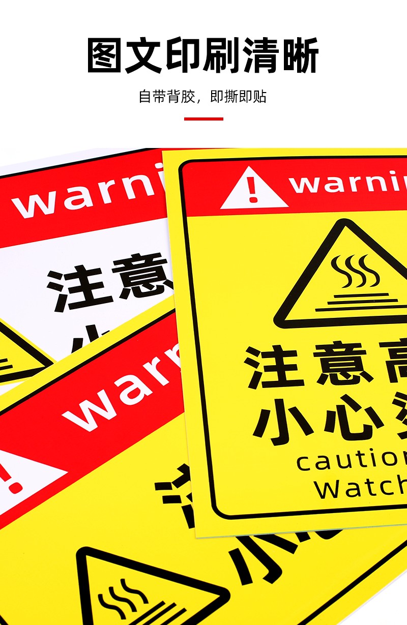 “注意高溫提示貼”“小心燙傷警示標志”“防燙傷標識”均采用優(yōu)質(zhì) PVC 材料制作,結實耐用。這些標識設計醒目,文字清晰,圖案直觀,能夠快速有效地傳達安全信息。自帶背膠,粘貼簡單牢固,可廣泛應用于廚房、工廠、實驗室等存在高溫燙傷風險的場所,時刻提醒人們注意高溫危險,防止燙傷事故發(fā)生,為您的工作和生活環(huán)境打造可靠的安全防線。